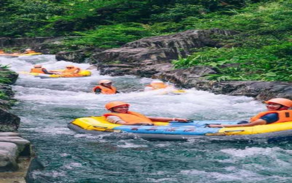 这条漂流线全长约八公里 ,最刺激的部分集中在“飞拉河湍急段 ” 。一开始,漂流的节奏较为缓慢,你可以悠闲地欣赏两岸的美景 ,绿树成荫,鸟语花香。可是,慢慢地 ,水流开始湍急,那个时候,你真是没有时间去欣赏周围了。此时 ,惊险的漂流冲击波就像过山车,让你体验到飞速下降的刺激感 。别说,惊叫声在水面上响起,真是有一种让人心潮澎湃的感觉。