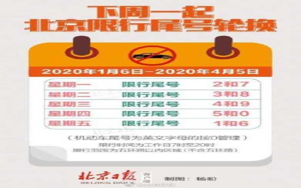 | 星期 | 限行尾号 |