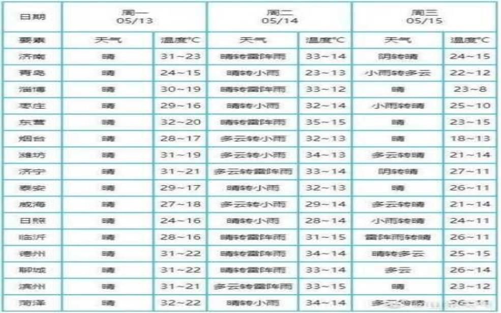 时间 | 气温(℃) | 降水概率 | 天气状况 |