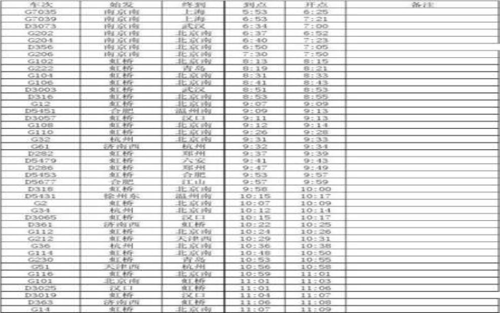 出发站 | 到达站 | 车次 | 发车时间 | 到达时间 | 运行时长 |