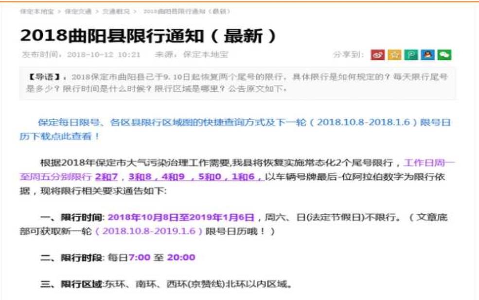 周末不限行 | 曲阳全境 | 无限制 |