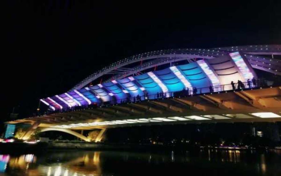 夜游岐江,必不可少的就是欣赏各种灯光装置,那是视觉的盛宴。在灯光艺术的引领下 ,岐江沿岸的每一处风景都被艺术化了。特别是到达“月亮湾 ”时,涌现的波光和灯光的折射,营造一种温馨且浪漫的氛围,情侣们在这儿拍照 ,更是显得非常有意境 。然而,这里值得提醒的是,拍照的时候一定要避免人多的时段 ,以免影响拍摄效果。